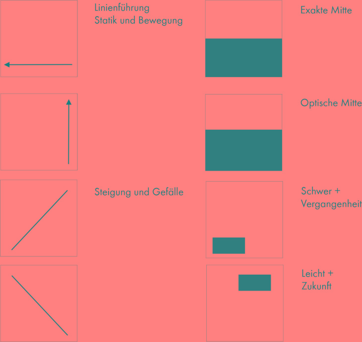 Gestaltgesetze Form, Raum, Wirkung Woher wissen wir, dass etwas im Vordergrund steht oder weiter weg ist? Was gehört zusammen? Ist etwas leicht oder schwer? Wir wissen das aufgrund unserer Naturerfahrung. Etwas ist leicht, weil es nach oben schwebt. Etwas ist im Vordergrund, weil es größer ist. Etwas liegt in der Ferne, weil es farblich schwächer ist. Etwas steigt an, wenn es sich von links unten nach rechts oben bewegt. Umgekehrt ist es ein Gefälle. Bei diesem Beispiel handelt es sich um einen Zusammenhang mit unserer Schreibweise. Denn wir schreiben von links nach rechts. Auch bei der Gestaltung von Dokumenten kommen manche der Gestaltgesetze zum Einsatz. Die Aufgabe dabei ist es, ein leeres, weißes Blatt Papier harmonisch und ausgeglichen mit Farbe (hier in der Regel mit Schwarz), zu füllen. Dabei kann man so manches „falsch“ machen. Unser Gehirn sucht stets nach Bekanntem und nach Struktur. Auch da, wo keine vorhanden ist, wird sie dennoch wahrgenommen. Gerade optische Täuschungen zeigen, wie leicht das Auge und das Gehirn zu überlisten sind. Im Folgenden finden Sie, grafisch dargestellt, die wichtigsten Gestaltgesetze:
