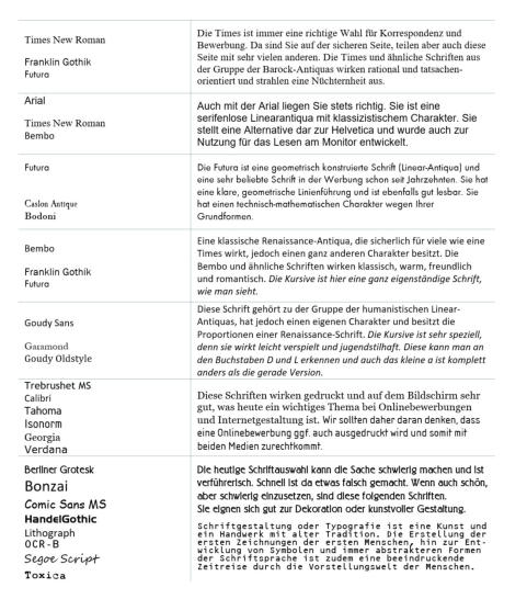 Schriftwahl Die Qual der Wahl Durch die Entwicklung und Verbreitung des Personalcomputers wurde es möglich, dass jeder von uns Textdokumente erstellt, diese drucken und verbreiten kann. Dies ist eine enorme Errungenschaft. Ich kann hier leider nicht auf die Geschichte der Schriftentwicklung eingehen. Das würde ich allerdings gerne, denn es ist eine hoch interessante Geschichte. Kaum jemand weiß, wie sehr sich Gesellschaft, Bildung und Erziehung alleine durch den Buchdruck verändert hat. Die Entwicklung von Schriften hing zudem in der Vergangenheit eng mit der damaligen Architektur zusammen. Schriften wurden nämlich nicht erstellt oder gezeichnet, sondern gebaut. Typografie ist eine Kunstform, die der Architektur stets sehr nahestand. Harmonie, Ästhetik, Statik, Spannung, Ruhe, … Interessant ist auch der Aspekt, dass dier ersten Schriften aus Symbolen oder Bildern bestanden. Die sogenannten Hieroglyphen. Heute beobachten wir wieder eine solche „Entwicklung“, dass Symbole, wie Smileys und andere, genutzt werden, um Botschaften zu senden. Lange Zeit mussten wir Schriften kaufen, sie waren lizensiert und ziemlich teuer. Das ist heute immer noch so, aber es gibt mittlerweile so viele kostenlose Schriften, zum Beispiel über Google, mit denen man wunderbar gestalten kann. Damit fangen allerdings ganz andere Probleme an. Welche Schrift wähle ich für welches Anliegen? Nicht jede Schrift eignet sich gleichermaßen. Besonders die Kombination von Schriften ist nicht einfach. Am besten ist, Sie bleiben bei einer einzigen Schrift und gestalten damit das gesamte Dokument. Manche Schriften verfügen über mehrere Schriftschnitte. Manchmal findet man eine ganze Schriftfamilie. Daher erhalten Sie im Folgenden eine kleine Schriftenkunde: Kombination von Schriften: Schrift und Aussage: Schrift und Anlass: